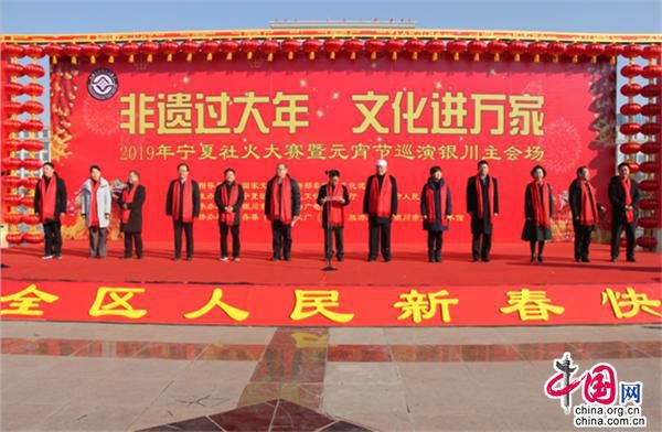 龙腾狮舞跃塞上,锣鼓欢歌闹元宵。2019年2月19日,宁夏文化和旅游厅联合五市人民政府举办“非遗过大年 文化进万家”2019年宁夏社火大赛暨元宵节巡演活动。活动主会场设在银川市,其他四市设分会场。这项活动,得到了国家文化和旅游部非物质文化遗产司的支持,宁夏回族自治区党委、政府的高度重视,国家文化和旅游部非遗司副司长王晨阳,宁夏回族自治区政府副主席杨培君,宁夏回族自治区政协洪洋副主席,宁夏回族自治区党委宣传部副部长、宁夏回族自治区文化和旅游厅党组书记刘军,宁夏回族自治区文化和旅游厅党组副书记、厅长宋建钢以及银川市相关领导到银川主会场参加活动,与广大群众共度元宵佳节。