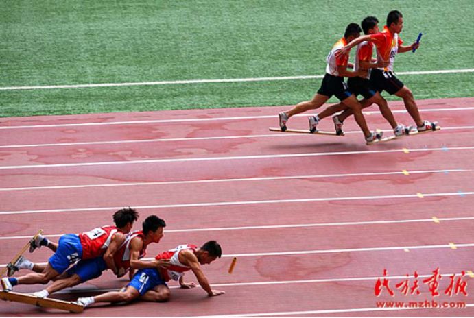 第十届全国少数民族传统体育运动会男子接力赛上的遗憾瞬间