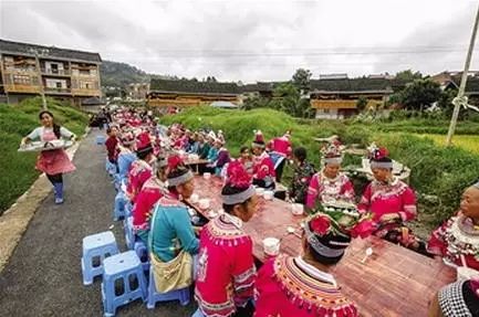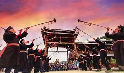 如今,每逢喜庆节日,村民们都要杀猪宰羊,穿着自制的民族盛装,敲起铜鼓,吹起芦笙、长号,备好红鸡蛋、苗带、拦门酒,跳起芦笙舞盛邀客人与他们一道欢庆节日。