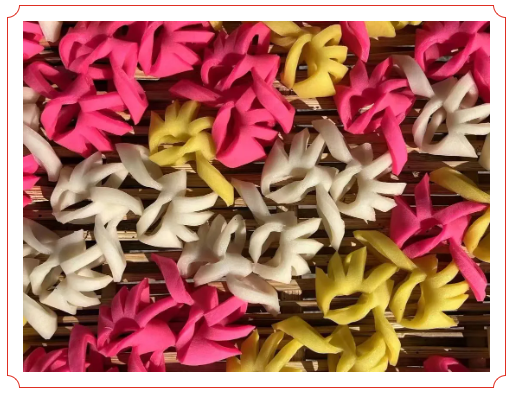 麻脆是一种形状丰富多彩、颜色鲜艳、口感香酥脆甜的纯天然传统特色年货食品。