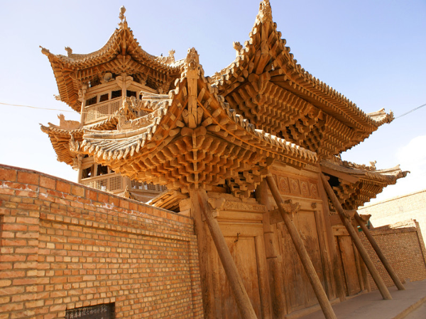 2)阿河滩清真寺:该寺坐落在化隆县甘都镇东的阿河滩村,建于清乾隆四十五年,其规模仅次于原循化县街子清真大寺,占地1938平方米。集藏式建筑,汉式建筑和伊斯兰建筑艺术为一体,是清真寺建筑群中甚为罕见的建筑工艺。