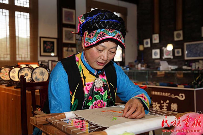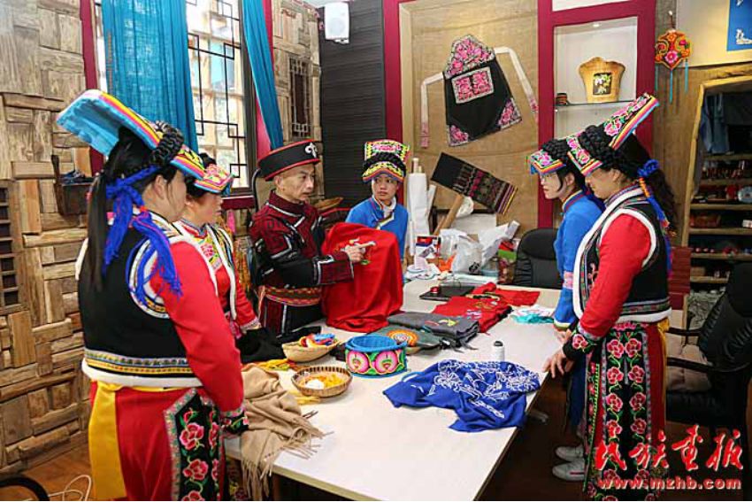 2018年县政府下拨28万元专项资金,对何国良进行了产业发展支持。“通过‘公司+农户’的方式,采取妇女居家灵活就业合作机制,在政府的帮助下,我们实现了带动羌族父老乡亲走上致富之路。”何国良介绍说,“我们免费提供材料、工具,免费培训,贫困户做的绣品高出市场价15%收购,鼓励通过自己的双手致富,有的贫困户光刺绣一项一年就有1.5万元收入。”