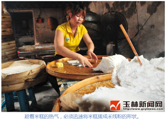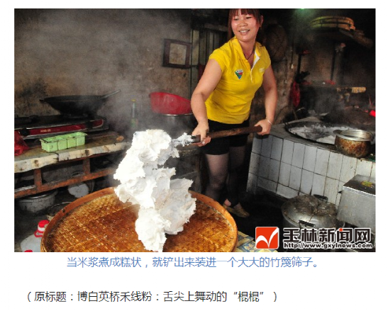 【美丽密码】在客家大县博白,粉可以说是转换的美食之最了。同是由大米转换而来,却呈现出不同的状态。有米粉、煮粉、凉粉、蒸粉等。禾线粉(当地人又称禾线籺、狗令棍、耘田棍),就是客家特有的一种风味小吃,其中又以原产博白英桥镇的禾线粉最为有名。它不仅是当地人不可或缺的主食之一,也是外地食客慕名前来购买的佳品。这一点,《美丽玉林行》栏目组早有所闻且神交已久,一次机缘巧合,终于能探访禾线粉的整个制作过程。