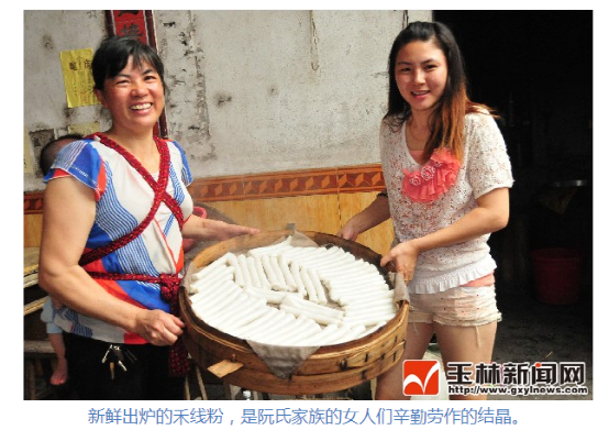 冯五妹告诉记者,她和大嫂苏十妹都是嫁进阮家之后,由家里的长辈带着做禾线粉。如今,大嫂都当奶奶了,每天还背着小孙子帮做禾线粉卖。听长辈说,他们阮家是从祖公辈就开始做禾线粉卖,轮到她们,算是第三代,现在她们又传授给儿子来做,也算是第四代了。