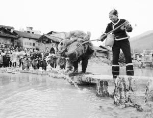 立春日,广西龙胜各族自治县的群众身着盛装“闹春牛”,祈求新年一帆风顺、万家幸福。新华社发 刘教清摄
