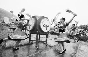 贵州松桃苗族自治县的苗族同胞打花鼓欢庆“四月八”。新华社发 龙元彬摄