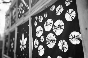 扎染,就是将布料按照人们预先设想好的图案,通过一定的经验技巧缝或者扎起来,然后浸入染液,或浸泡冷染,或加温热染,经一定时间后捞出晾干,拆开扎线,就会出现相应的花纹。染液在布料上的浸染色彩比较和谐,边沿也很柔美,各种花纹都可以经过设计慢慢浸染到位,有一种回归自然的拙趣。