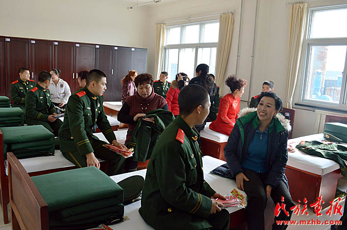 共享社区的爱心妈妈们进军营,为战士缝缝补补