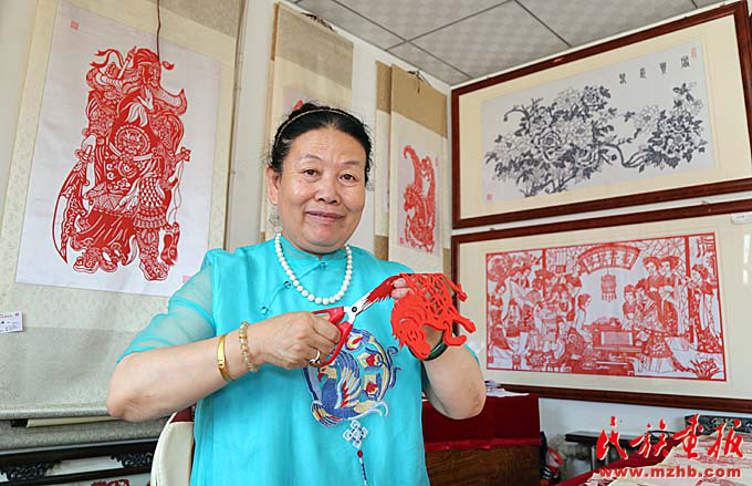 伏兆娥从6岁就跟着妈妈学剪纸,小时候就站在窗下给人剪窗花,边剪边贴,最后人家送碗面条,算是报酬。妈妈的手艺是外婆传下来的,伏兆娥没想到有一天,自己成了国家级“非遗”传承人,而这门手艺还传到了女儿手中。