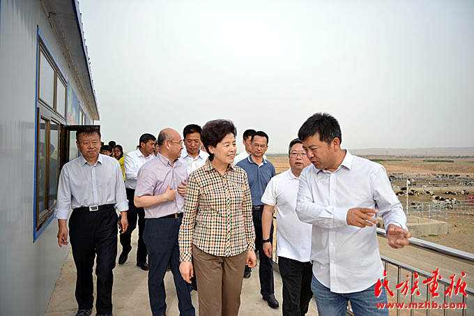 王振和(右一)向宁夏回族自治区主席咸辉一行介绍壹加壹产业扶贫情况