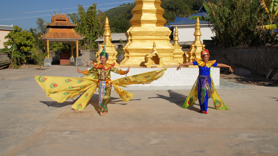 表演性舞蹈有“孔雀舞”“大象舞”“鱼舞”“蝴蝶舞”“篾帽舞”等。最具代表性的是孔雀舞。