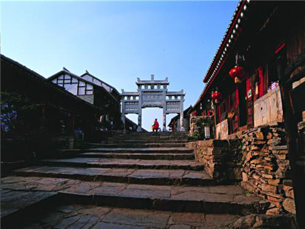 这里真是石头砌就的世界。青石板铺成的古驿道,宽阔而平坦,洁净得一尘不染。民居则是石瓦、石墙、石凳、石磨。区别只在于富人家的墙用青条石砌就,穷人家的墙用碎石片叠成,只是年深日久,这些房子愈显得低矮破旧了。置身在这冰冷坚硬的石的世界中,自然更渴望温馨。于是,家家户户都在自己的小院中广植花木,透过小小的门框,可以看到里面一派姹紫嫣红。谁说这里的人们不懂得创造美、欣赏美呢?