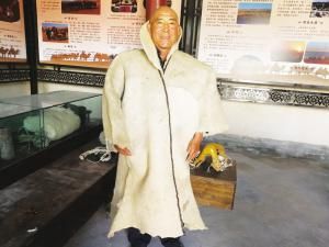 曹宗让展示骆驼客毡衣。 王文仁摄