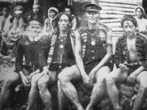 骁勇善战的马力观泰雅人,为首者(右二)还戴着一顶日警帽,那是他的战利品。