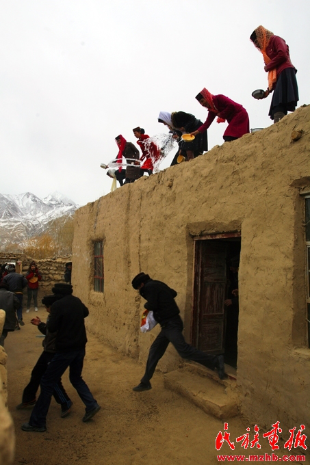 肖贡巴哈尔节前家家户户都要打扫房屋,在屋里抛洒面粉,并用面粉在墙上画出图案