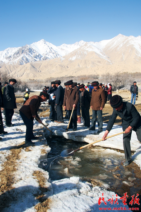 帕米尔高原气候寒冷,冬季河流结冰,春季如不破冰引水,人们便无法及时播种。同时帕米尔高原上人口稀少,居住分散,仅靠一两户人家是难以完成开渠引水的浩大工程的,所以一定要全村男女老少一起出动,团结互助。