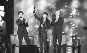 旦增尼玛(中)夺得本年度《中国好声音》总冠军。资料图片