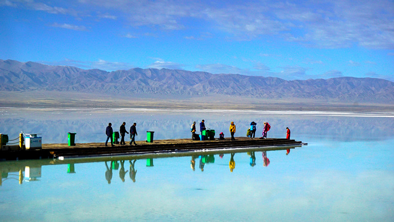 旅游公司党委书记李天兵告诉记者:茶卡盐湖景区是海西州新兴的旅游基地和展示当地各民族文化风情的窗口,有民俗文化建筑、民族风味小吃、民族手工艺品展销、民族歌舞表演等,自然人文景观与浓郁的民族风情融为一体。公司发展不忘民族团结,在一些重要的民族节日,景区对少数民族群众免费开放。公司招工首先考虑当地少数民族群众,把景区商铺优先租给当地少数民族经营,每年拿出租金收入的60%用于专项扶贫。2016年,公司投入50万元和周边贫困乡结对帮扶。